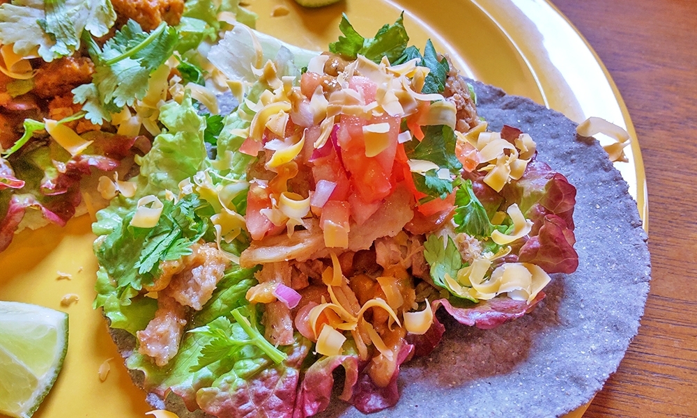 本格タコス 大人は2枚ぐらいでちょうどいい分量だそうです トルティーヤは焼きたて すべて手作り
